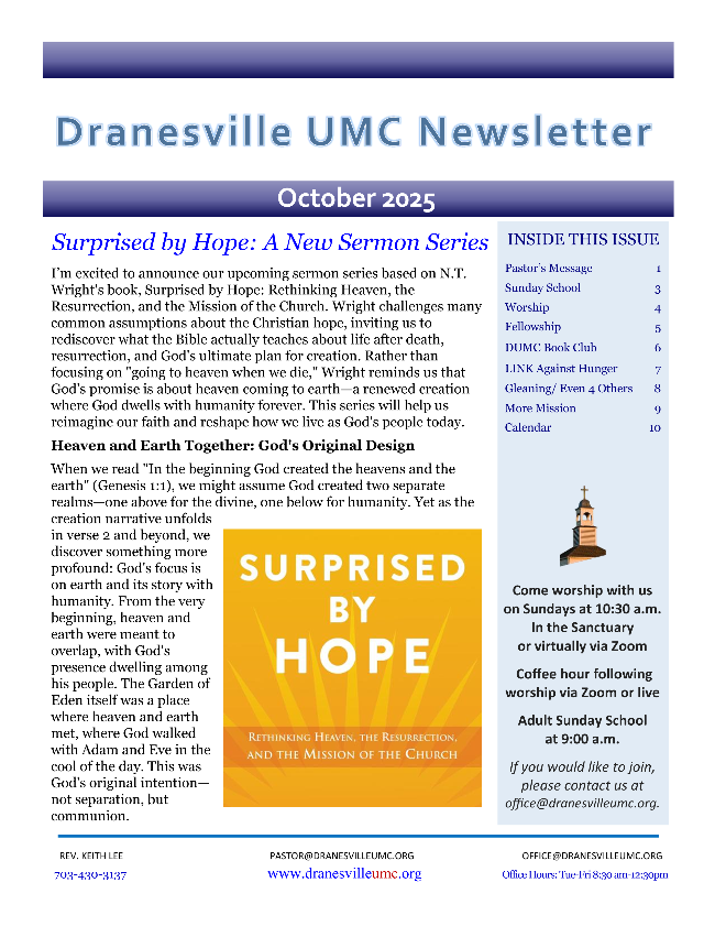 This monthly volunteer opportunity for the LINK Mobile Food Pantry is at 9:30 AM on the second Tuesday of each month in the parking lot of Christ the Redeemer Catholic Church. Join Team Dranesville and wear your Dranesville UMC T-shirts while packaging food for, or distributing food to, those in need.
